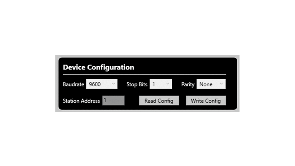 رابط کاربری نرمافزار تنظیم پارامترهای کارت شبکه از سه بخش اصلی تشکیل شده است. در بخش نخست، پارامترهای پیشفرض دستگاه جهت برقراری ارتباط تنظیم میشوند.