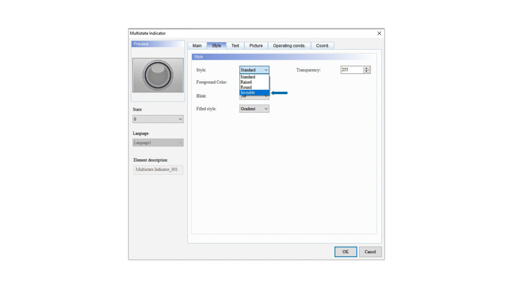 در بخش style، گزینه style را در حالت invisible قرار می دهیم.
