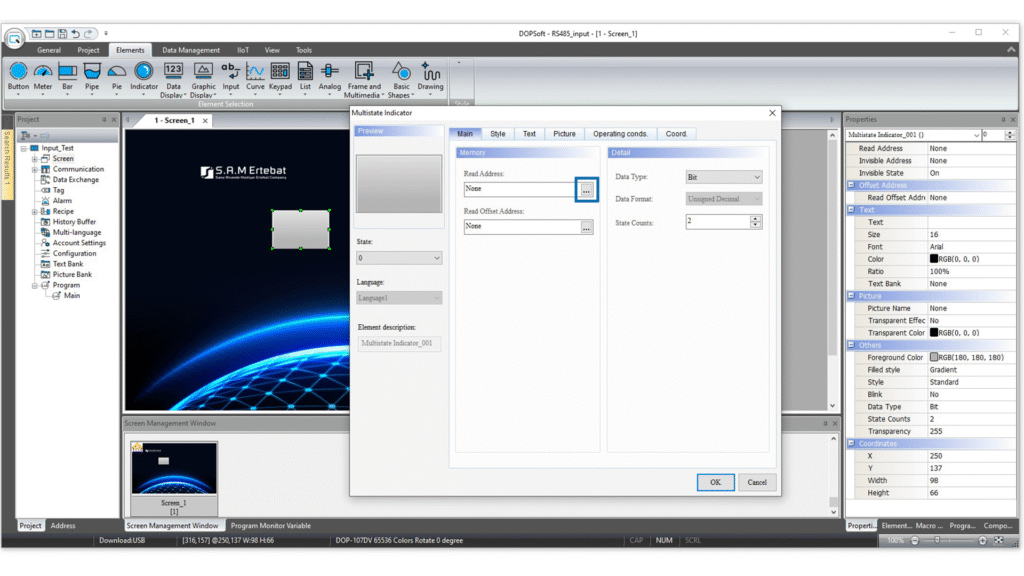 با دوبار کلیک روی المان، صفحهی تنظیمات آن باز میشود. در قسمت read Adress، میتوانیم آدرس رجیستر ورودی مورد نظر را مشخص کنیم.