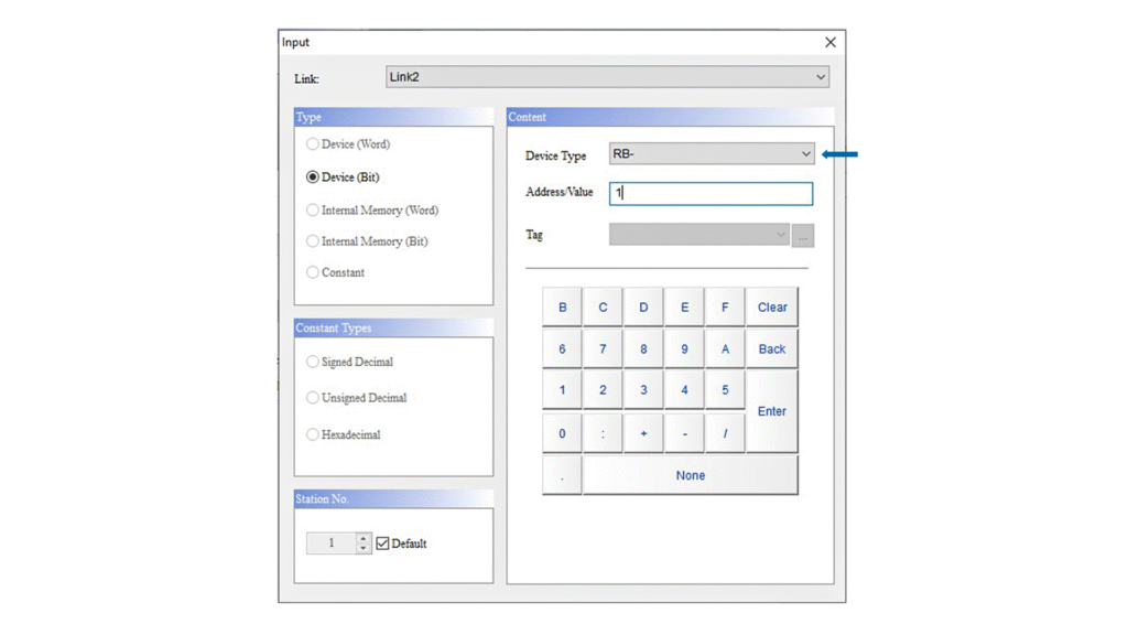 با توجه به اینکه HMI نقشMASTER را دارد، از بخش series، گزینه RTU HEX Adress (Master)را انتخاب می کنیم.
