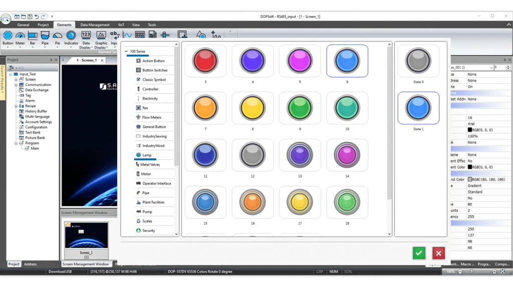 نرمافزار مورد استفاده برای برنامهنویسی و طراحی HMI، نرمافزار DOPSoft است.