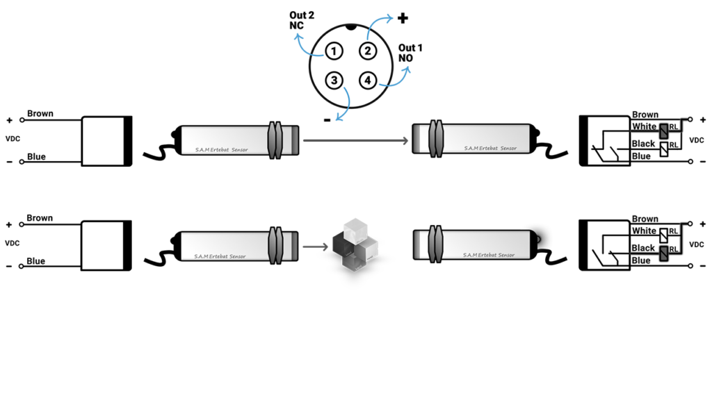پین 1 برای ولتاژ مثبت تغذیه، پین 3 برای ولتاژ منفی تغذیه و پین 4 برای سیگنال خروجی نرمال باز NO سنسور و پین 4 برای سیگنال خروجی نرمال بسته NC سنسور می باشد.